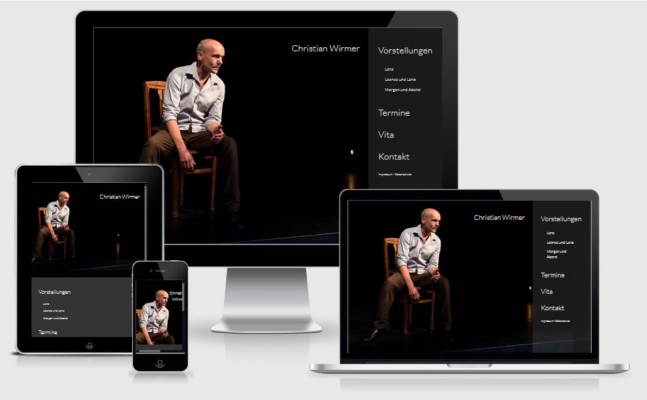 Christian Wirmer ist selbständiger Schauspieler, er spielt in Solorollen Stücke von Georg Büchner und Jon Fosse. Die Webseite besteht schon seit 2010.